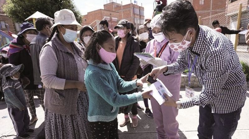 Los voluntarios entregaron ayer el primer lote de aparatos en el barrio de Pampahasi de La Paz para que los beneficiarios puedan pasar clases virtuales. Este miércoles se lanzará una segunda campaña.