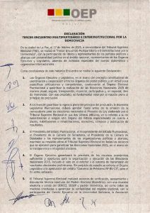 El Tribunal Supremo Electoral (TSE) y los partidos políticos alcanzaron este lunes un histórico acuerdo de 15 puntos que definirá el rumbo hacia las elecciones generales de agosto próximo, tras varias horas de negociaciones.