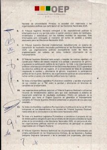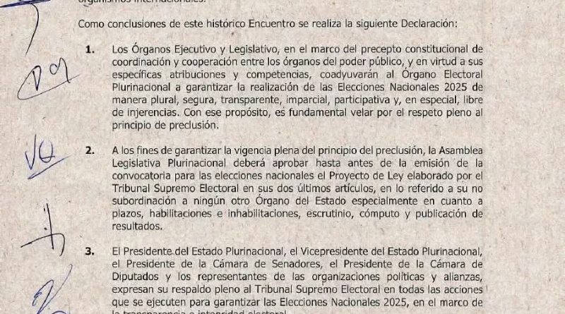 El acuerdo también incluye medidas clave como el debate obligatorio entre candidatos y el respeto al principio de preclusión. Asimismo, los vocales del TSE solicitaron su incorporación a la Ley 044 de Juzgamiento a Altas Autoridades del Estado, mientras se avanza en la aprobación de un crédito internacional destinado a fortalecer el proceso electoral.