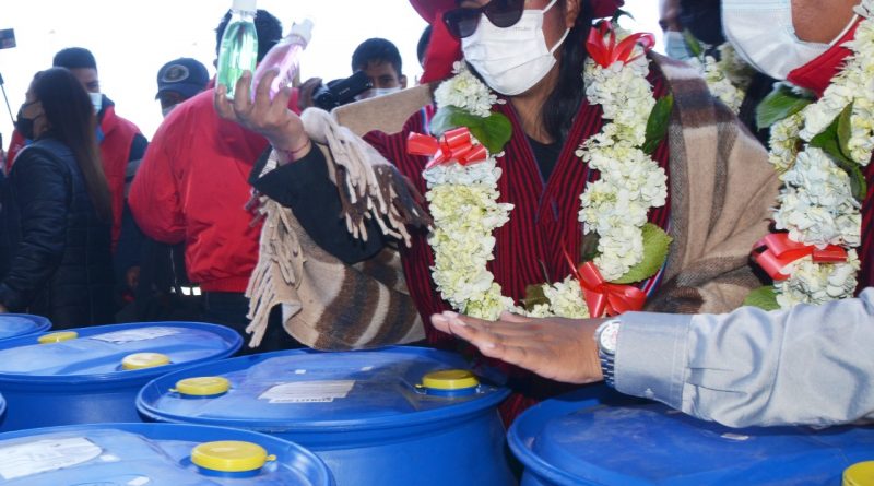 La alcaldesa Eva Copa entregó el martes equipamiento de bioseguridad a las juntas escolares de las 486 unidades educativas de la ciudad de El Alto, oportunidad en la que convocó a la dirigencia del sector buscar la unidad en bien de la educación de los niños y jóvenes.