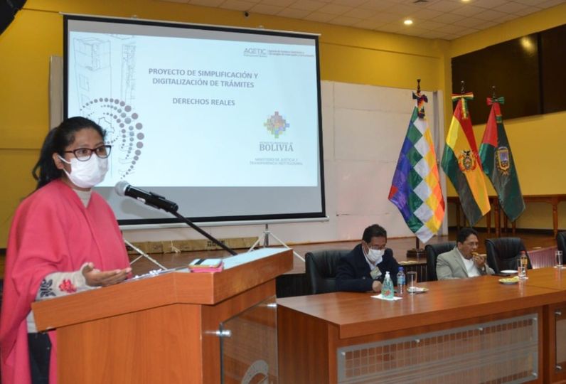La alcaldesa Eva Copa manifestó el martes su pleno respaldo al proyecto normativo para la digitalización y simplificación de trámites en Derechos Reales, presentado por el Viceministerio de Defensa de los Derechos del Usuario y del Consumidor, ya que esto permitirá ahorrar tiempo y dinero a la población, además de terminar con la corrupción en esa repartición del Órgano Judicial que inclusive usurpó algunas funciones a la Alcaldía.