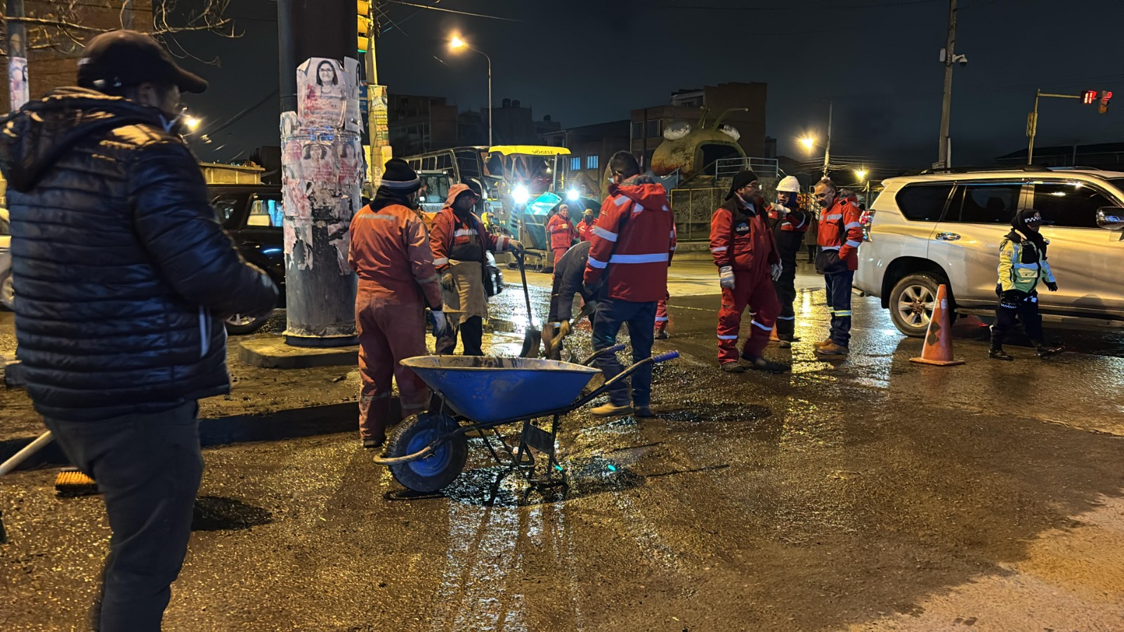 Al menos medio centenar de trabajadores municipales de la Subalcaldía del Distrito 1, la Secretaría Municipal de Infraestructura Pública y Despacho, además de tres maquinarias asfaltadoras intervienen este jueves por la noche la Avenida del Policía con el Plan de Reconstrucción y Mantenimiento Vial 2025.