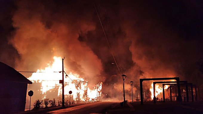 Otros edificios también eran amenazados por la turba de manifestantes que levantaron barricadas en varias calles de la ciudad mientras agentes antidisturbios los enfrentaban con gases lacrimógenos y carros lanza-agua, según imágenes de medios locales.