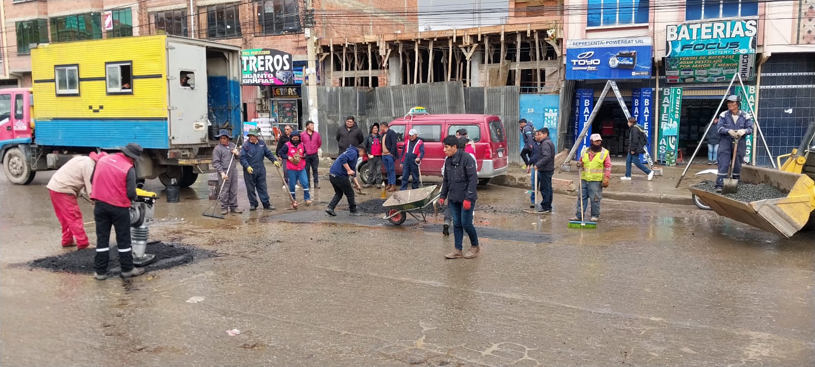 “Se nos ha instruido hacer esta tarea y desde el día de ayer (lunes) hemos estado desplegando las cuadrillas para trabajar en esta misión que tenemos de bachear las calles y darle una buena cara a nuestro municipio”, dijo el director de desarrollo Productivo, Pequeña y Medianas Empresas, Gonzalo Layme.