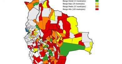 Según el reporte epidemiológico, el departamento de Tarija sigue en la lista de mayores contagios con 261, La Paz registró 243, Chuquisaca 162, Cochabamba 80, Santa Cruz 69, Pando 53, Beni 51 y Oruro 16.