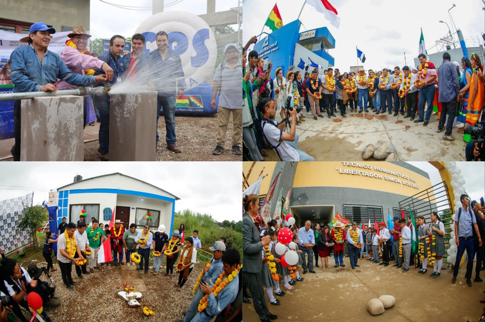 Arce también entregó la unidad educativa Técnico Humanístico Libertador Simón Bolívar, que demandó una inversión de Bs 5,6 millones; cuatro proyectos de viviendas, que representan una inversión de más de Bs 9,4 millones; el centro de abasto que demandó una inversión de Bs 20 millones; el mejoramiento del sistema de agua potable Colonia José María Linares que se financió con Bs 1,7 millones; y el recinto aduanero que cuenta con áreas para servidores públicos de la Aduana, Policía, operadores y otros.