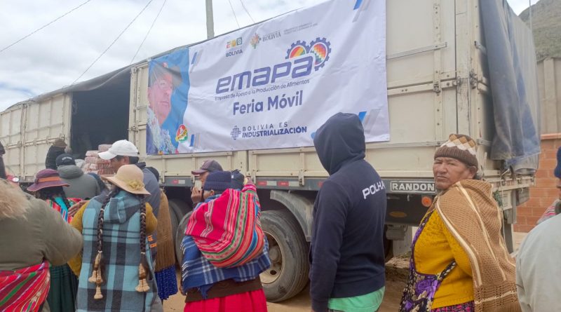 llegaron a CANTON CHIARAQUE, PATARANI y PATACAMAYA para que los habitantes de esta región puedan acceder a los productos de la canasta familiar a precio y peso justo. Esto se realiza en coordinación con el Gobierno de nuestro hermano, presidente Luis Arce Catacora, y el gerente general de Emapa Franklin Flores, quien coadyuva en garantizar la seguridad alimentaria de las familias bolivianas.