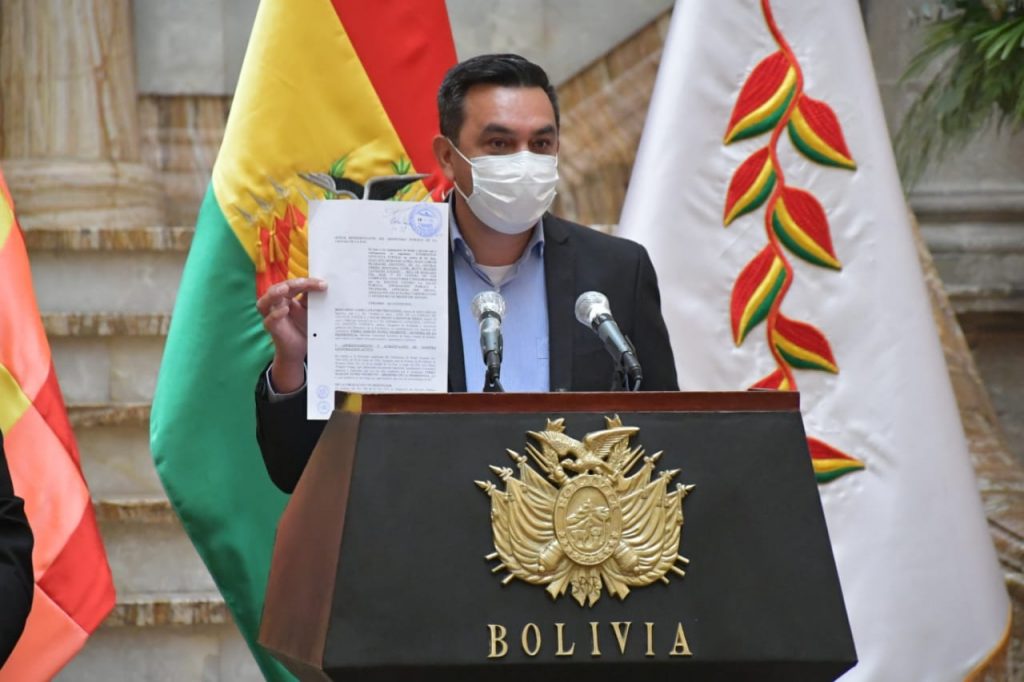 «Como Ministro de la Presidencia e interpuesto una demanda penal contra Evo Morales, Juan Carlos Huarachi, Beatriz Yañíquez y todos los cómplices, coautores y encubridores por los delitos contra la salud pública, instigación pública a delinquir, apología del delito, asociación delictuosa y destrucción o deterioro de bienes del Estado», afirmó Núñez durante una conferencia de prensa.