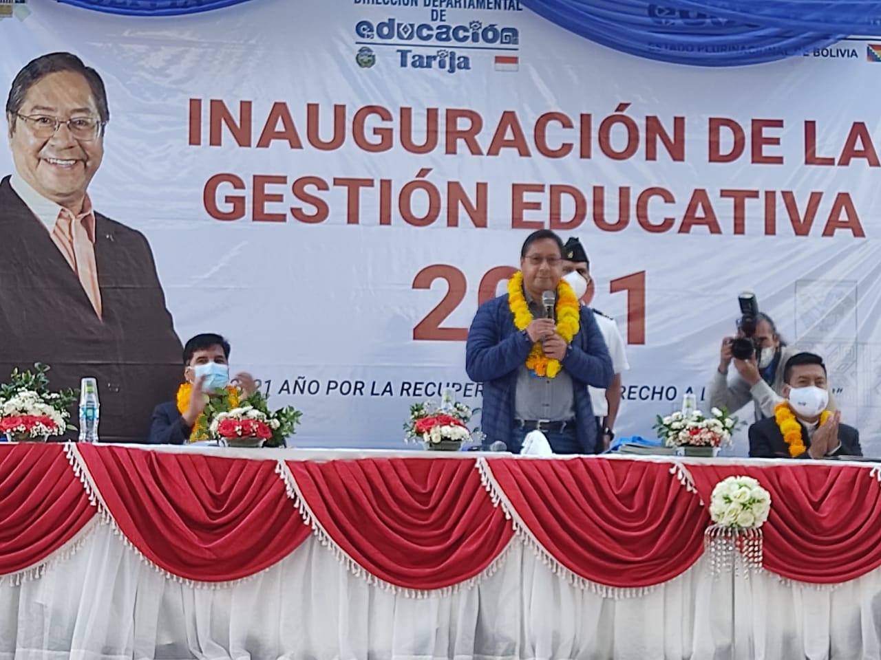 Este lunes, el presidente Luis Alberto Arce Catacora inauguró la Gestión Educativa 2021 junto al Ministro de Educación, Prof. Adrián Quelca Tarqui, en la unidad educativa “Pedro Rivera”, ubicado en la comunidad San Andrés del departamento de Tarija.