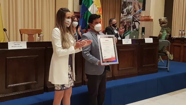 El alcalde de Torotoro, Eliodoro Uriona, recibió el reconocimiento por parte de la compañía internacional Intedya en un acto que se llevó a cabo en el Hall de la Vicepresidencia del Estado, en la ciudad de La Paz.