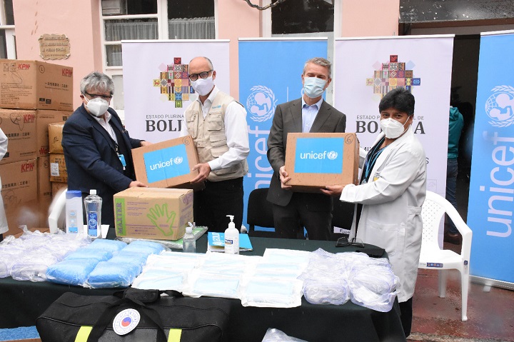 “El principal objetivo es dotar de suministros de protección a los trabajadores de la salud. Ellos están en primera línea sin descanso proporcionando atención y ayuda a los niños, niñas, adolescentes y a las familias afectadas por esta crisis mundial sin precedentes”, afirmó Rafael Ramírez, representante de UNICEF en Bolivia.